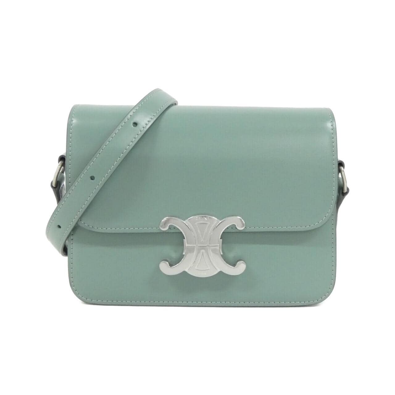 セリーヌのティーン トリオンフです。使う機会が減ったので出品します。 セラドンというグリーンの上品な色合いで、シルバー金具がよく映えます。まだまだ綺麗な状態ですが、使用に伴う薄い擦れや小傷はあります。ポケットも充実していて、普段使いにちょうどいいサイズ感です。 カーフレザーで高級感もあり、毎日でも長く愛用していただけると思います。質問があればお気軽にどうぞ。