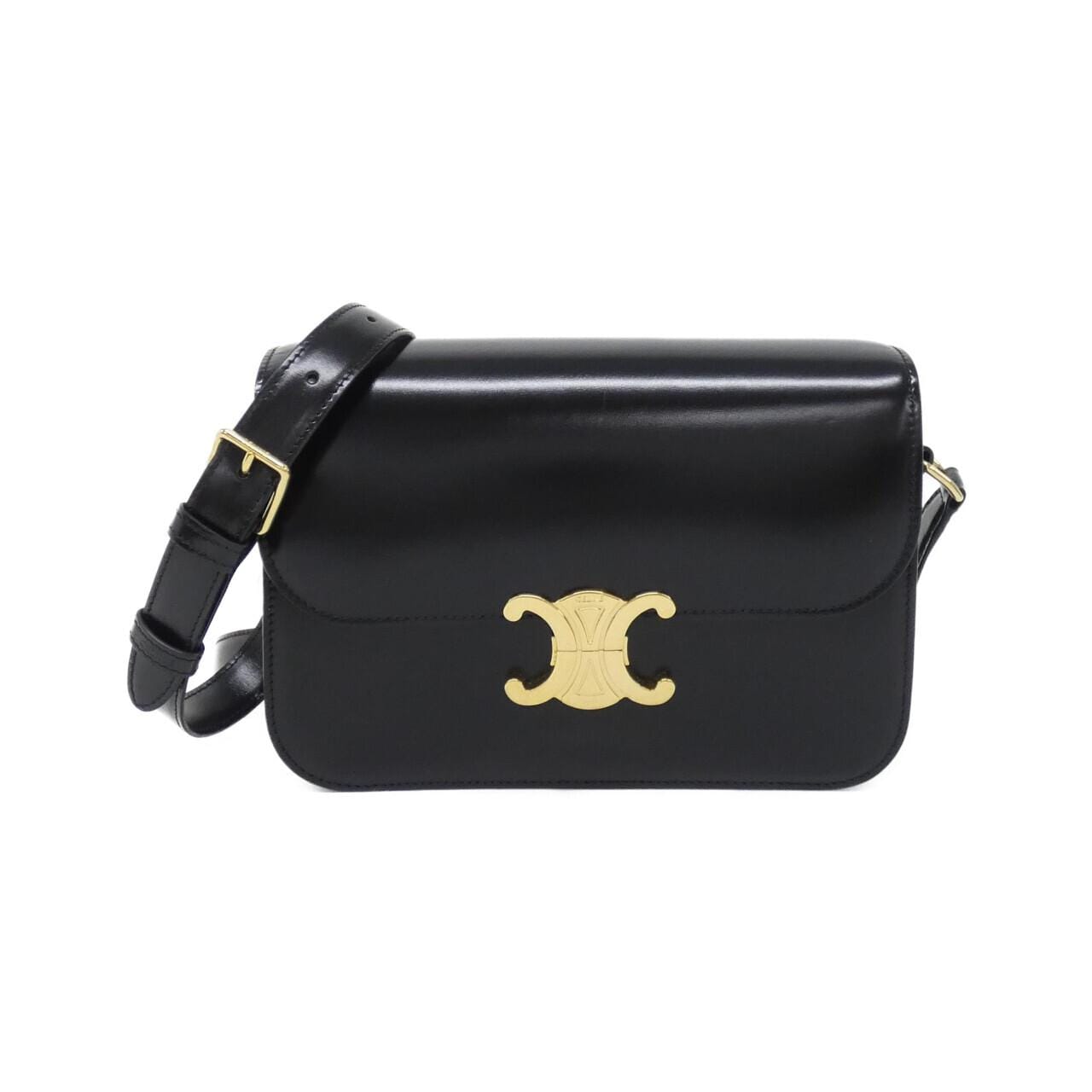 セリーヌのクラシック トリオンフショルダーバッグです。 友人からもらったのですが、手持ちの別のバッグばかり使ってしまうので出品することにしました。数回使った程度で、まだまだきれいな状態です。若干の擦れや小傷がありますが、目立つ傷や汚れはありません。ゴールド金具が上品で、コーデに合わせやすいブラックカラーです。 サイズは横22cm×縦16cmでちょうどいい大きさ。ストラップの長さが93〜108cmなので肩掛けしやすいです。素材はしっかりしたカーフレザー。保存袋も付いてます。 少しの使用感で十分という方、このお値段でセリーヌをお探しの方はいかがでしょうか。返品も可能ですので安心してご購入いただけます。質問があればコメントください。
