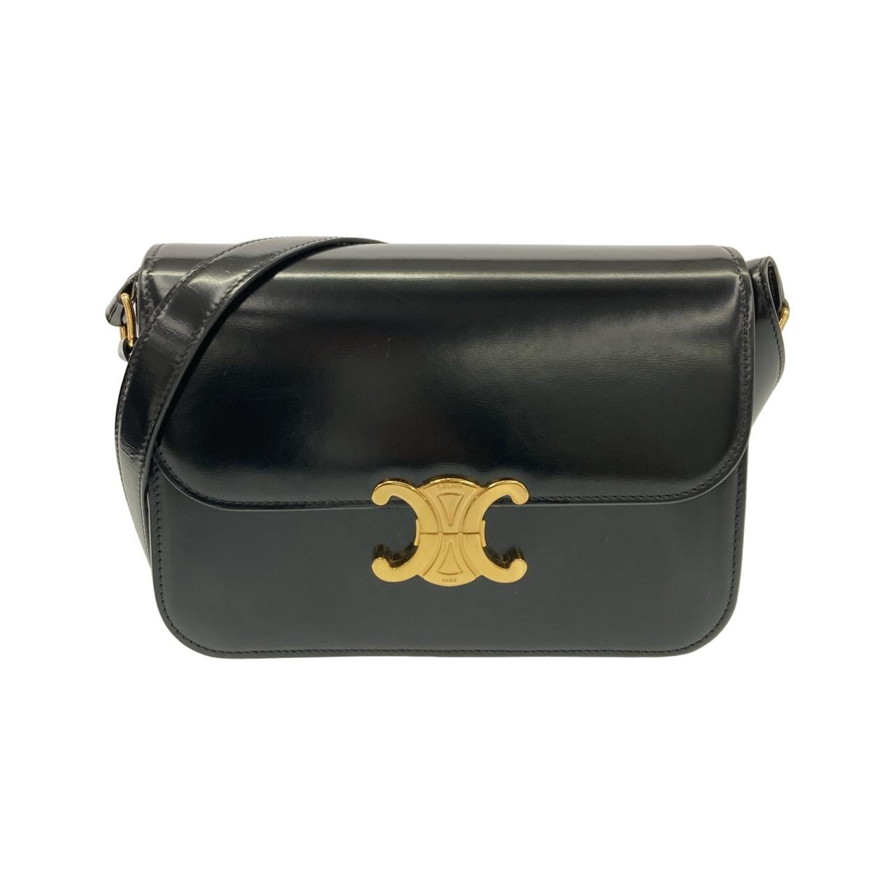 セリーヌのClassic Triompheショルダーバッグです。前に持ってた時期があるんですが、最近使う機会がなくなったので出品します。 カーフレザーの高級感がある一品で、サイズも丁度いいので日常使いにぴったりです。まだまだ綺麗な状態で、目立つ傷や汚れはありません。ただ使用感は少しありますので、細かい擦れなどはご理解ください。保存袋も付いてます。 【素材】カーフ 【カラー】ブラック(ゴールド金具) 【サイズ】横22cm×縦17cm×幅5cm、ストラップ103~118.5cm コメントください。