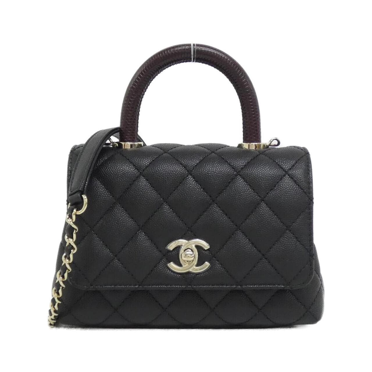 ご覧いただきありがとうございます。シャネルのCocoハンドルの出品です。 ブラック×ボルドーカラーで、ゴールド金具がとても上品です。キャビアスキンとリザードエンボスの素材合わせで高級感があります。 使用感は少なめでまだまだ綺麗な状態ですが、使用に伴う小傷や若干の擦れはあります。サイズは18×13×9cmで、日常使いにちょうど良い大きさです。持ち手も調整可能なロングストラップ付きなので、肩掛けもできます。 新しいバッグを買う機会ができたので出品することにしました。気になることはコメントください。