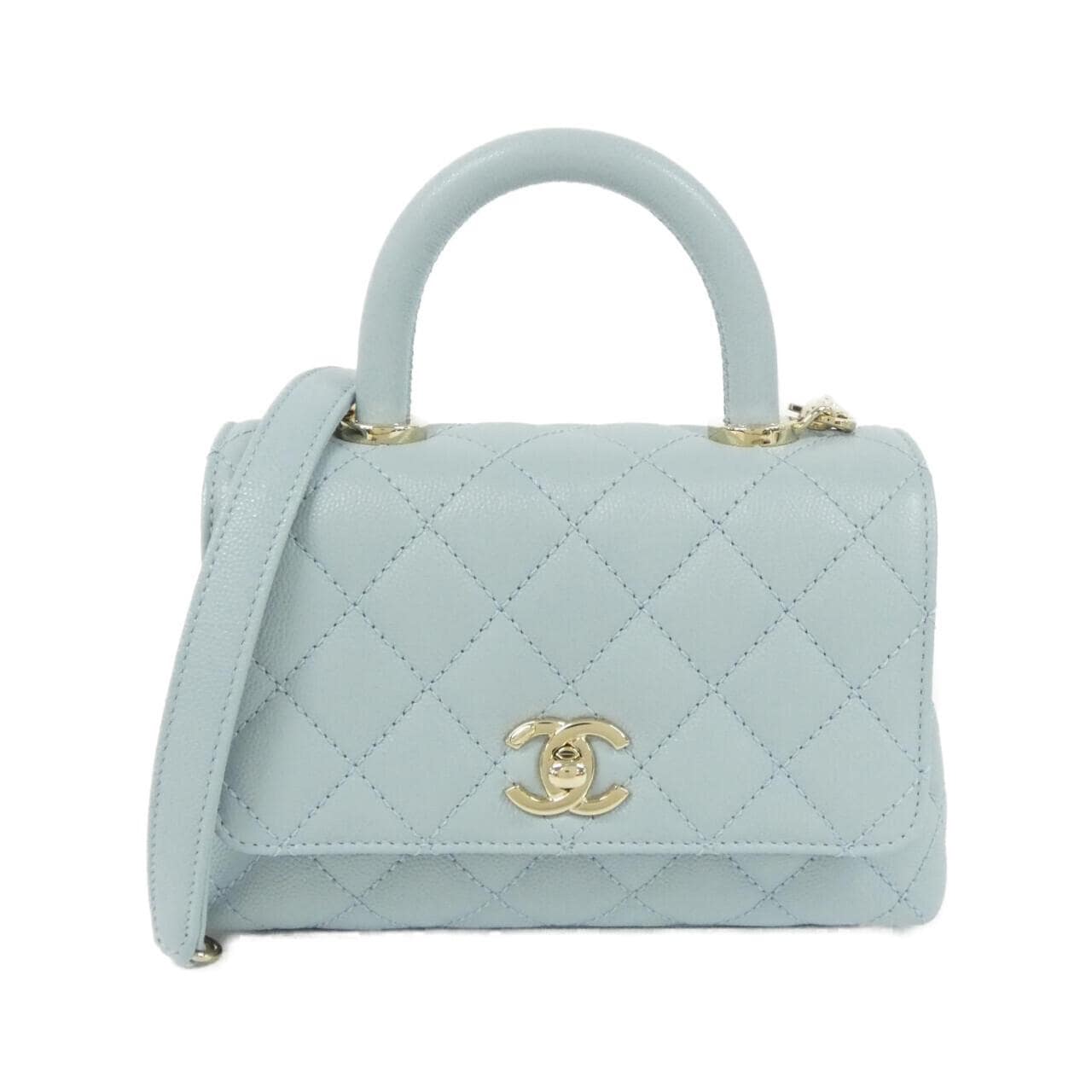 ご覧いただきありがとうございます。 シャネルのココハンドルを出品します。ライトブルーの色合いが上品で、ゴールド金具との相性も素敵なバッグです。 友人から譲ってもらったのですが、手持ちのバッグと被ってしまったため出品することにしました。使用頻度が少なかったので、まだまだきれいな状態を保っています。細かい傷や若干の黒ずみはありますが、目立つダメージはありません。 キャビアスキンは傷に強く、長く愛用できる素材です。サイズは日常使いにちょうどいいコンパクトサイズ。ショルダーストラップは調整可能なので、肩掛けにも斜め掛けにも対応します。保存袋と箱も付いてますので、大切に使ってくださる方へお譲りします。 不明な点やご質問があればお気軽にコメントください。