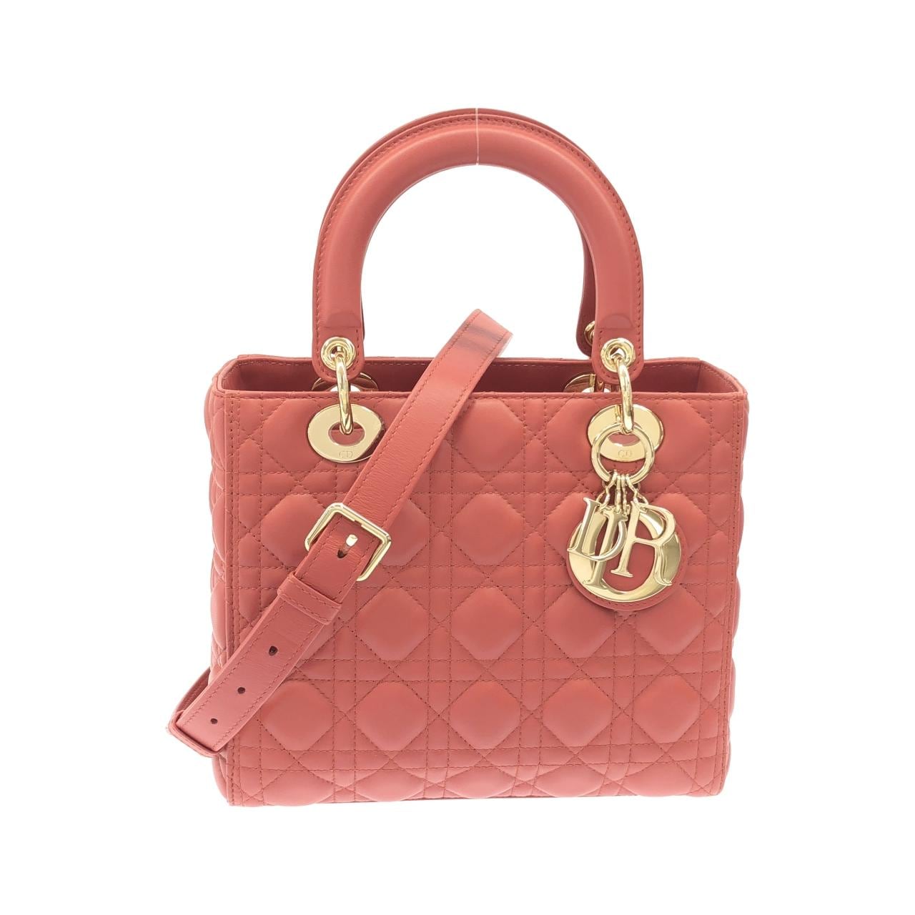 ご覧いただきありがとうございます。クリスチャンディオールのレディディオールミディアムサイズです。 スカーレットレッドと金具の組み合わせがすごく素敵で、何度か使ってから出番が減ってしまったので出品することにしました。ラム素材で手触りも良く、使用感は少なめだと思います。全体的にまだ綺麗な状態ですが、やはり中古品なので細かい擦れや黒ずみ、小傷などがあります。 持ち手は約34cm、ショルダーストラップは調整可能で約108~118.5cmまで対応しています。ギャランティカードと箱も付属しているので、プレゼントにも喜ばれると思います。質問があればお気軽にコメントください。