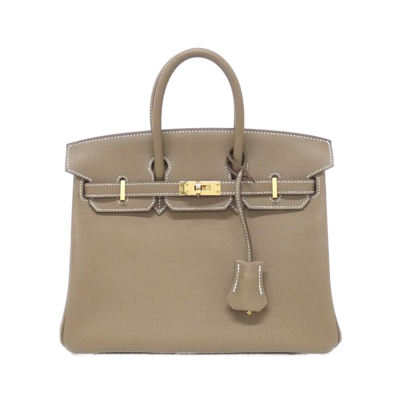 ご覧いただきありがとうございます。エルメスのバーキン25を出品します。 スイフト素材のエトゥープカラーで、ゴールド金具の上品な組み合わせです。使用感は少なく、まだまだきれいな状態を保っています。部分的に薄い擦れや小傷、若干のくすみがありますが、目立つダメージはありません。 友人からもらったものの、手持ちのバッグと重複してしまったため出品することにしました。カデナ、鍵、クロシェット、保存袋、箱も全て揃っています。25cmサイズで日常使いにちょうど良いサイズ感です。何かご質問やサイズ感についてコメントいただければお答えします。