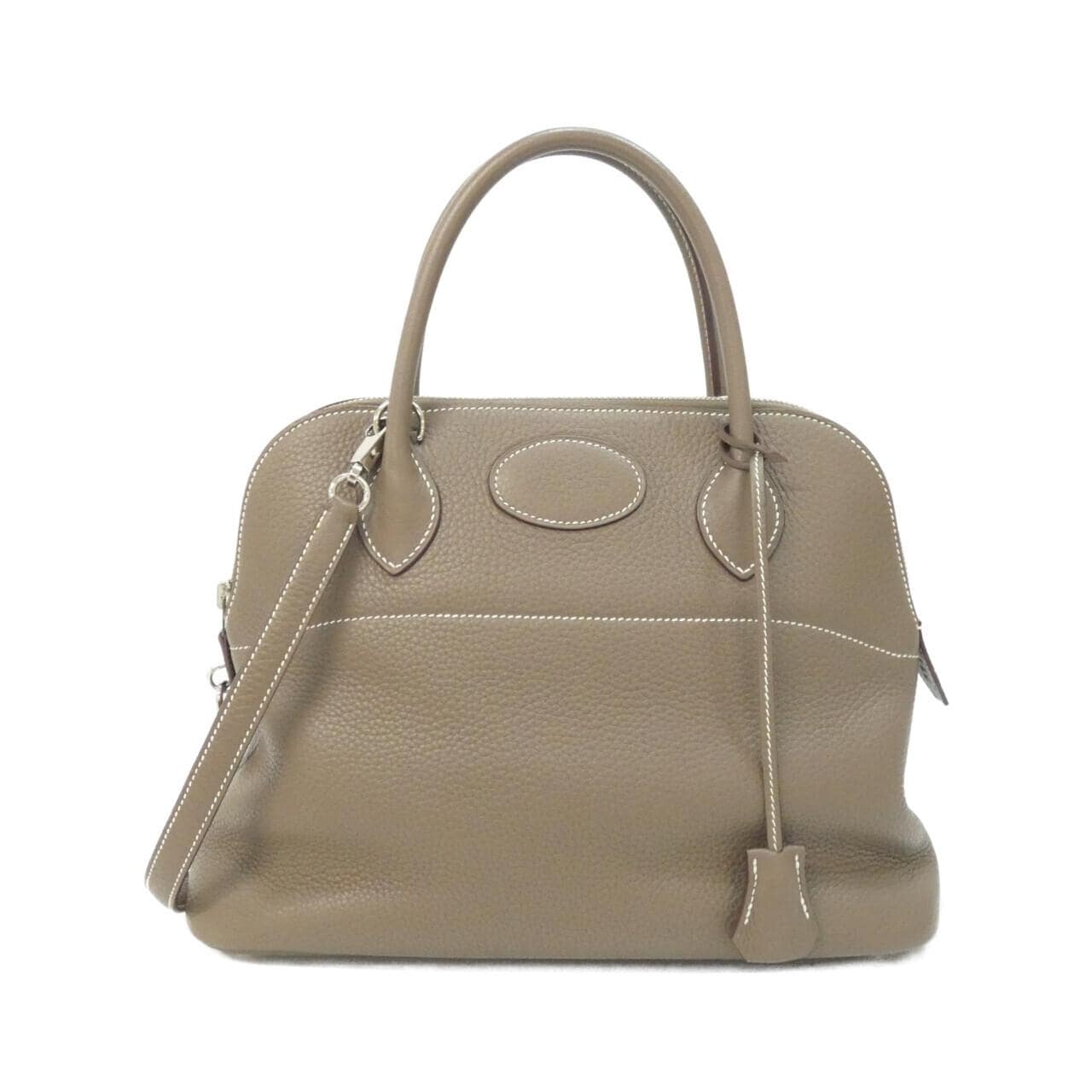 ご覧いただきありがとうございます。エルメスのボリード31を出品します。 数年前に購入して何度か使っていましたが、最近は別のバッグをメインで使うようになったので手放すことにしました。 トリヨンクレマンスのベージュ系(エトゥープ)で、上品な印象です。パラジウム金具がきれいに光ってます。持ち手の長さも使いやすく、ショルダーストラップも付いているので2way対応。 正直なところ使用感はありますが、目立つダメージはなく、まだまだ綺麗な状態だと思います。部分的な擦れやくすみはありますが、経年変化の範囲かなと。 カデナと鍵、クロシェットも完備。保存袋も付いています。サイズは31×23×12cmです。 即購入OKです。ご不明な点はお気軽にお問い合わせください。