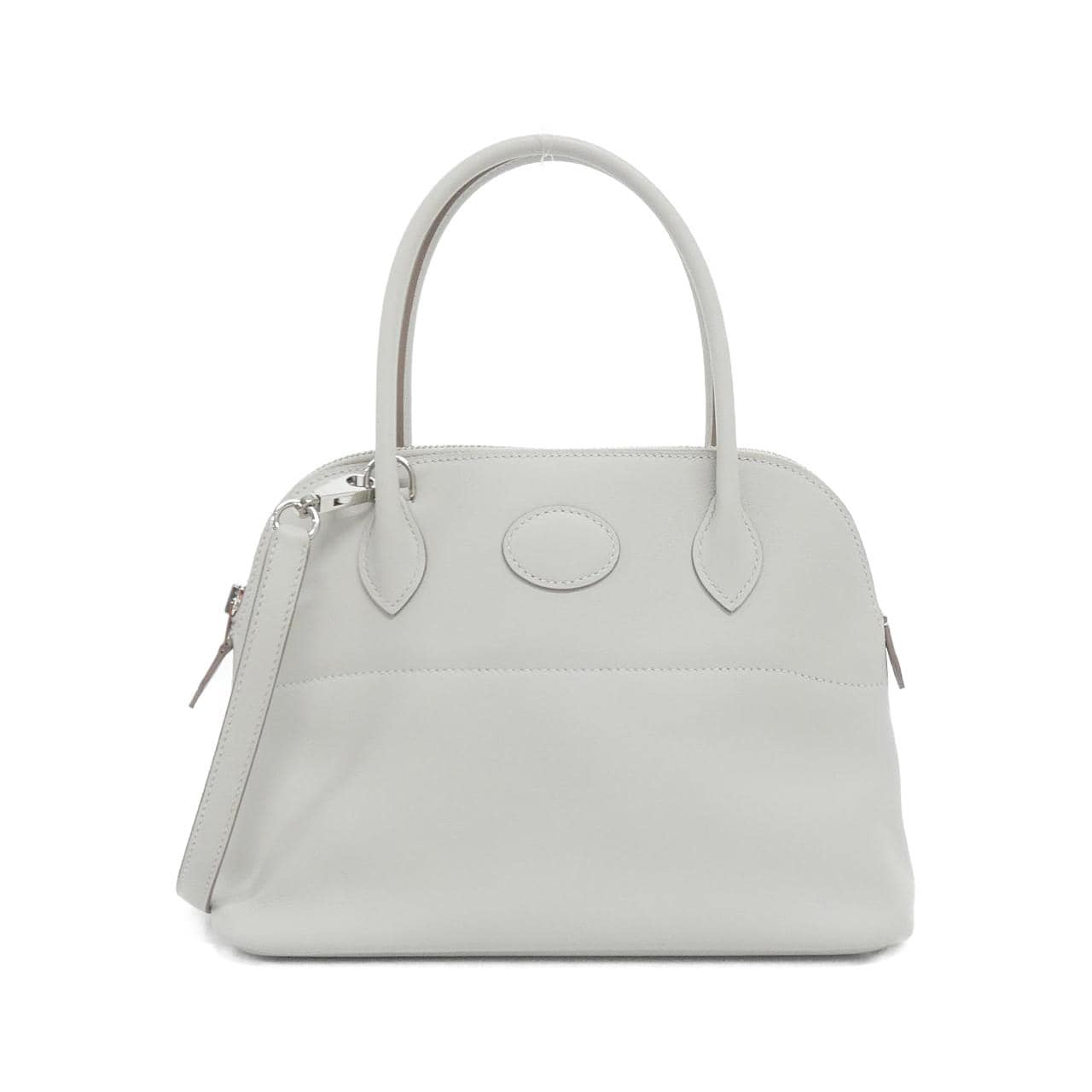 ご覧いただきありがとうございます。 エルメスのボレロを出品します。スイフト素材のベトン色で、シルバー金具がついた上品な一品です。以前購入したものの、他のバッグを使う機会が増えたので出品することにしました。 使用感は少なく、全体的にまだ綺麗な状態です。ただ、持ち手や底面に軽い擦れや黒ずみ、小傷がいくつかあります。内側にはポケットが1つあり、ストラップ付きなので肩掛けでも使えます。 サイズは横27cm、縦19cm、マチ10cmで、日常使いにちょうどいい大きさです。持ち手は28cm、ショルダーストラップは92.5cmあります。重さは軽めの390gです。 タグはまだ付いているので返品対応も可能です。細かいことが気になる方はコメントいただければ詳しい状態をお伝えします。