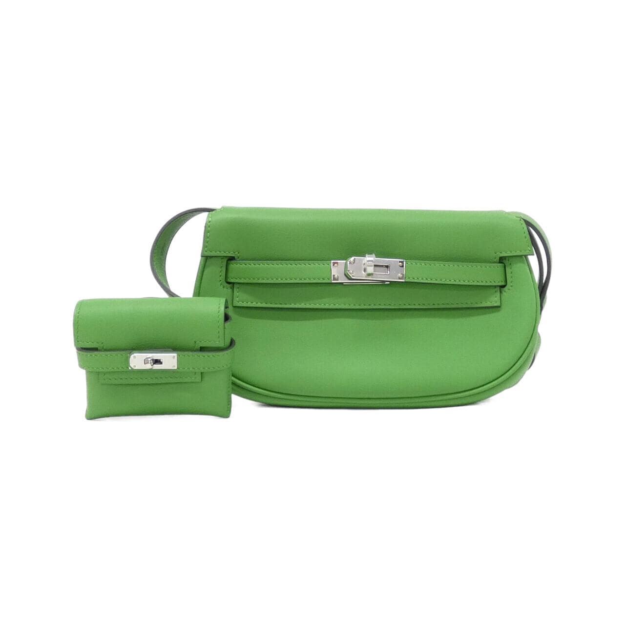 ご覧いただきありがとうございます。 エルメスのケリー ムーヴです。グリーン系の落ち着いた色合いで、使いやすいサイズ感が魅力的です。スイフト素材で高級感もあります。 前の持ち主があまり使わなかったみたいで、まだまだ綺麗な状態です。若干の擦れや小傷、くすみはありますが、全体的には目立たない程度。ポーチと保存袋、箱も揃っているので、プレゼントにも良さそうです。 ショルダーストラップは調整可能で、斜め掛けでも肩掛けでも使えます。容量も丁度良くて、毎日のお出かけにぴったりですよ。 不明な点があればお気軽にコメントください。