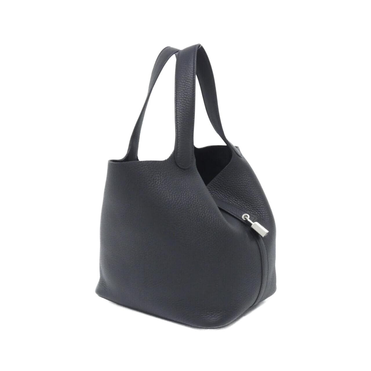 ご覧いただきありがとうございます。エルメスのピコタンロックの出品です。 数年前に購入してから、そこまで使う機会がなかったので出品することにしました。トリヨンクレマンスのブラックで、シルバー金具がついています。まだまだ綺麗な状態ですが、使用に伴う軽い擦れや薄っすらとした黒ずみがところどころあります。カデナと鍵、保存袋、箱も全部揃ってます。 サイズは22×23×18cmで、普段使いに丁度いいサイズ感です。元々お手入れには気をつけてたので、目立つようなダメージはないと思います。質問あればお気軽にどうぞ。