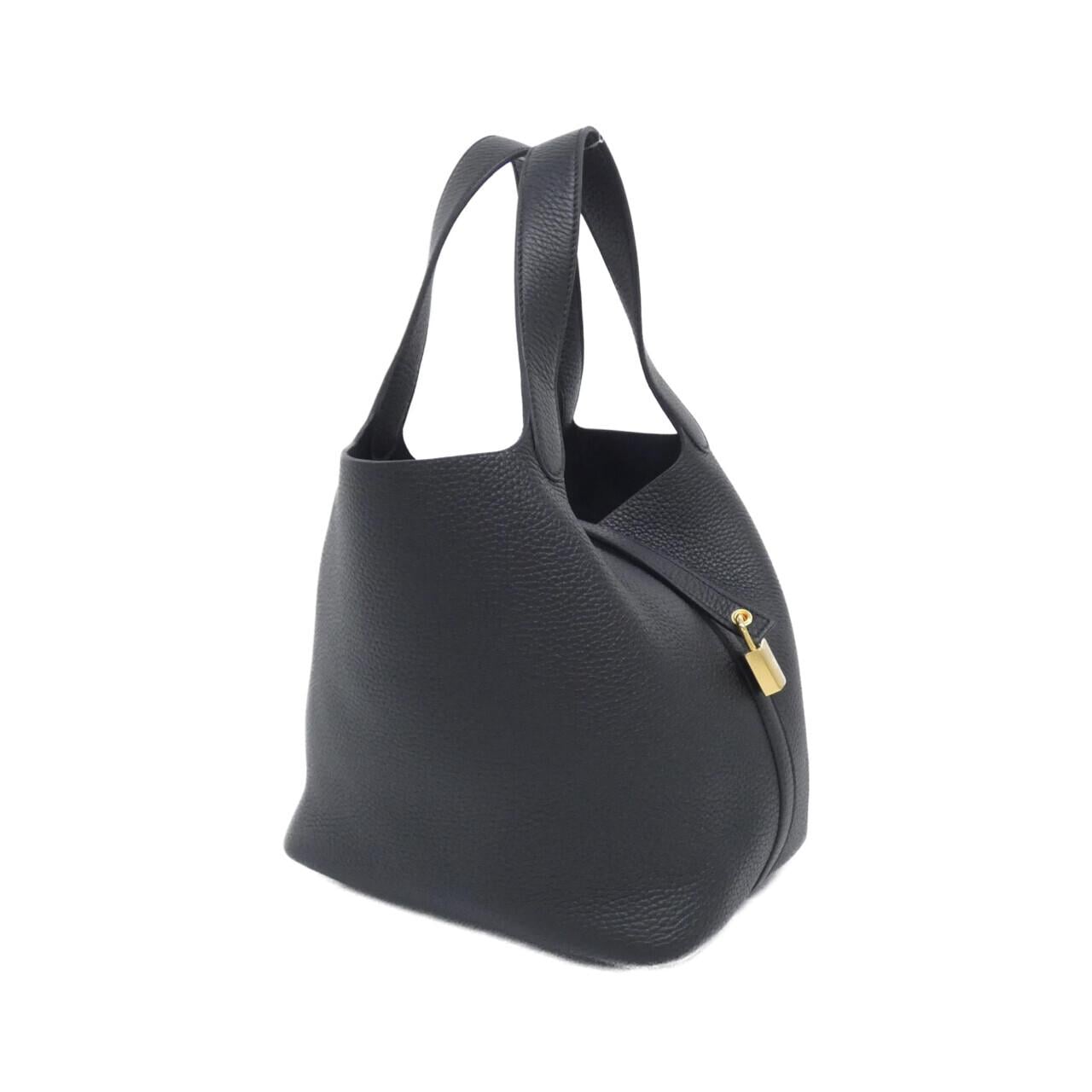 エルメスのピコタン ロックです。数回使用したくらいでほぼ未使用に近い状態です。トリヨンクレマンスの素材は傷に強く、ブラックなので汚れも目立ちにくく、長く愛用できます。金具はゴールドで高級感があります。サイズは22×23×18cmで、デイリーユースにちょうど良いサイズ感。カデナと鍵、保存袋も全てついてます。部分的に小傷やくすみがありますが、使用感は本当に少ないです。B刻印の商品です。割と早めに手放したいので価格を抑えてます。質問あればコメントください。