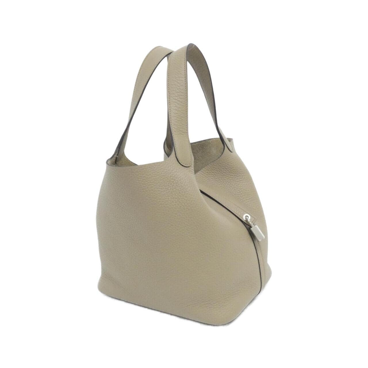 ご覧いただきありがとうございます。エルメスのピコタンロックです。 【素材】トリヨンクレマンス 【カラー】ベージュマルファ×シルバー金具 使用回数が少なく、まだまだきれいな状態です。全体的にくすみや部分的な擦れはありますが、目立つダメージはありません。W刻印の確認が取れています。 カデナ、鍵、保存袋も揃っているので、すぐに使える状態です。サイズも使いやすい22×23×18cmで、日常使いから少し特別な日まで活躍してくれます。 ほぼ出番がなくなってしまったので、大切に使ってくれる方にお譲りしたいと思い出品しました。どうぞよろしくお願いします。
