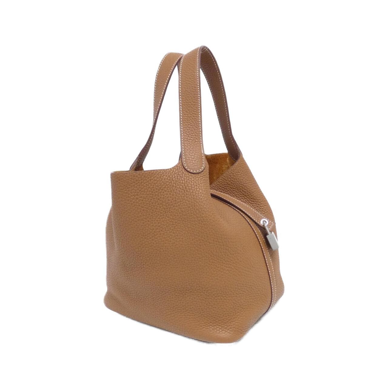 ご覧いただきありがとうございます。 エルメスのピコタン ロックの出品です。結婚式用に購入しましたが、使う機会がなくなったので手放すことにしました。 使用感は少なく、まだまだ綺麗な状態です。部分的に薄い擦れや小傷はありますが、全体的には傷や汚れは目立たないレベル。ブラウン×ゴールド金具とパラジウムのコンビは落ち着いた印象で、どんなコーデにも合わせやすいと思います。 【素材】トリヨンクレマンス 【カラー】ブラウン 【サイズ】横22cm×縦23cm×幅18cm 鍵とカデナ、保存袋、箱が全て付属しています。使いやすいサイズ感なので、毎日バッグに最適です。何か質問があればコメントください。