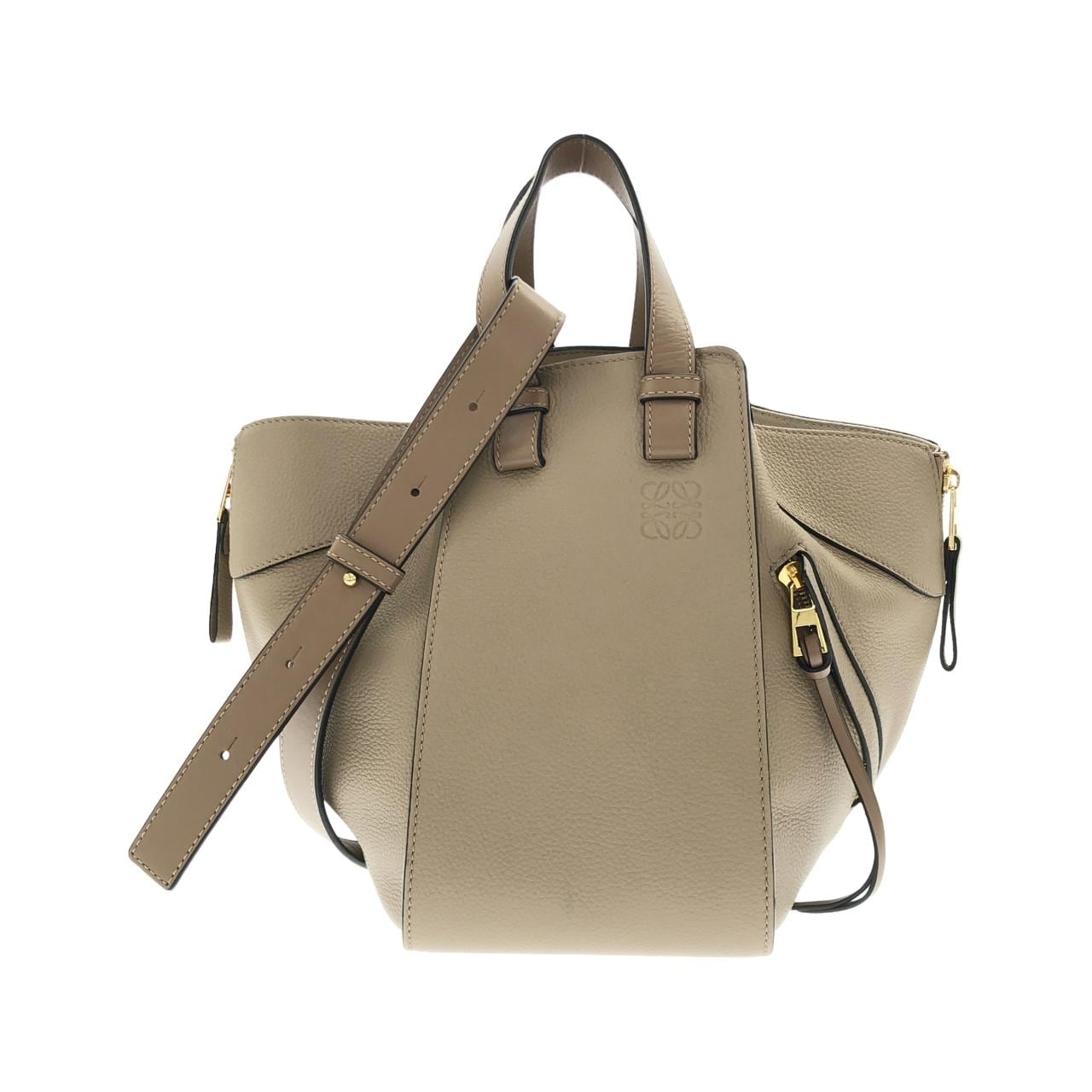 ロエベのハンモックスモール、サンドベージュです。去年購入しましたが、他のバッグをよく使うようになったので出品します。使用頻度が少なかったので、まだまだ綺麗な状態です。細かい擦れや若干のくすみはありますが、目立つダメージはほぼありません。A4サイズも入る程よいサイズ感で、ショルダーストラップは調整可能なので使い勝手も良いです。高級感のあるカーフレザーの質感も魅力。保存袋とストラップも付いてます。定価から大幅に下げてるので、この機会にいかがでしょうか。